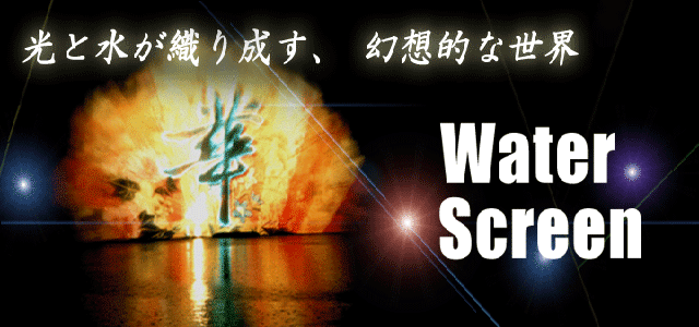 Water Screen(ウォータースクリーン)」は大型ポンプで吸い込んだ水を特殊ノズルから噴き出すことにより形成される、幅50m×高さ20mという世界最大級の扇型水幕スクリーンです。